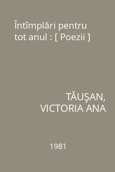 | Titlu | Întîmplări pentru tot anul : [ Poezii ] |