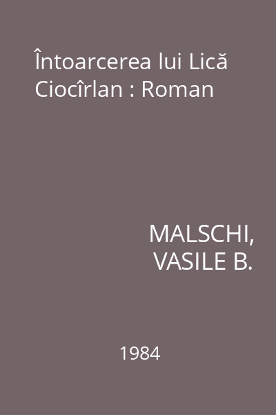 | Titlu | Întoarcerea lui Lică Ciocîrlan : Roman |