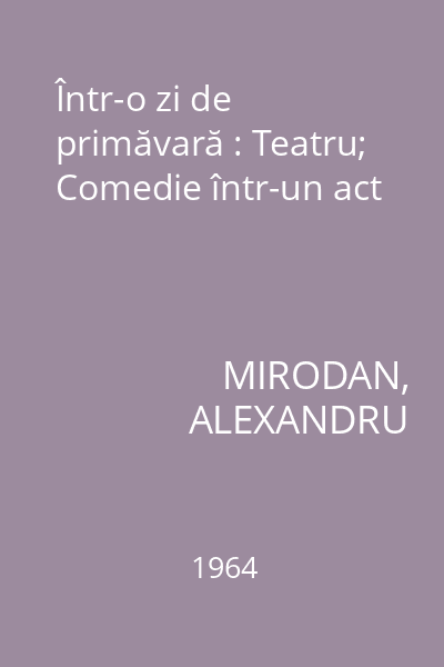 | Titlu | Într-o zi de primăvară : Teatru; Comedie într-un act |