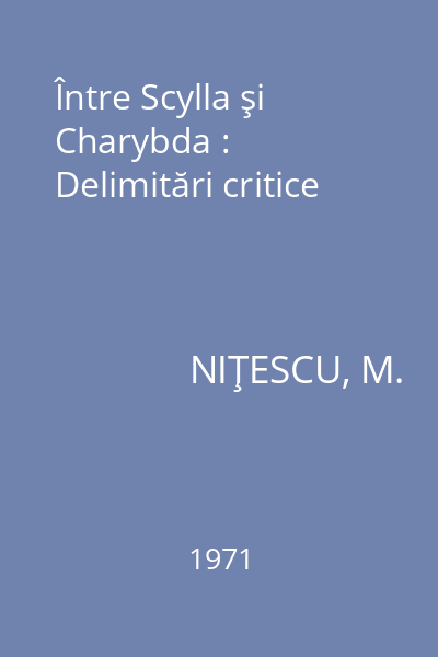 | Titlu | Între Scylla şi Charybda : Delimitări critice |