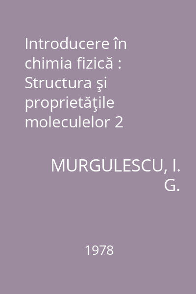 | Titlu | Introducere în chimia fizică : Structura şi proprietăţile moleculelor 2 |
