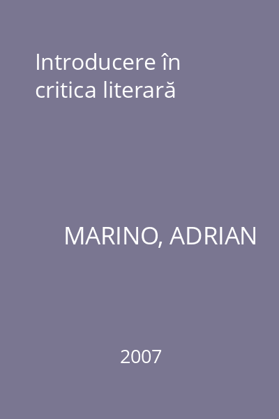 | Titlu | Introducere în critica literară |
