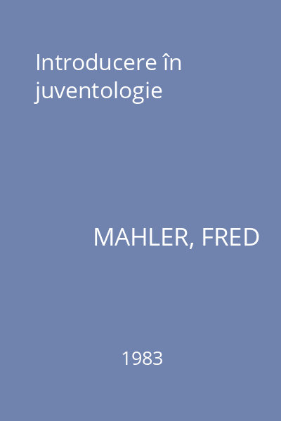 | Titlu | Introducere în juventologie |