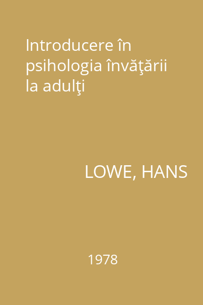 | Titlu | Introducere în psihologia învăţării la adulţi |