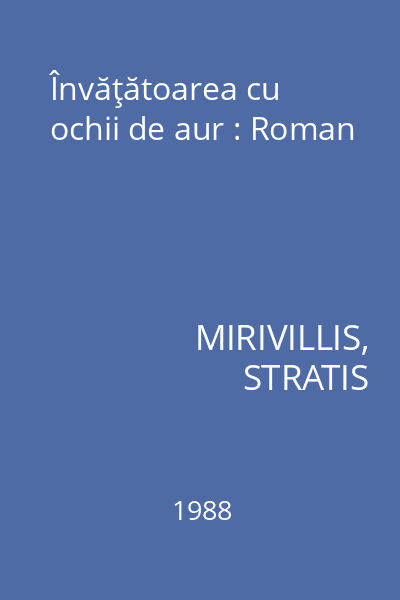 | Titlu | Învăţătoarea cu ochii de aur : Roman |