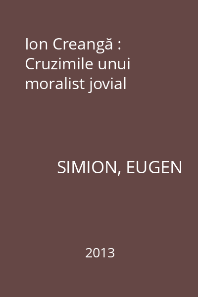 | Titlu | Ion Creangă : Cruzimile unui moralist jovial |