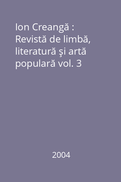 | Titlu | Ion Creangă : Revistă de limbă, literatură şi artă populară vol. 3 |