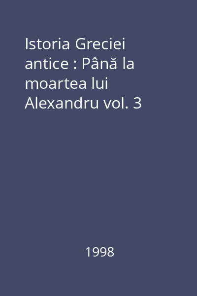 | Titlu | Istoria Greciei antice : Până la moartea lui Alexandru vol. 3 |