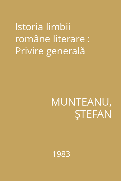 | Titlu | Istoria limbii române literare : Privire generală |