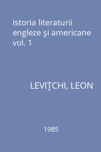 | Titlu | Istoria literaturii engleze şi americane vol. 1 |
