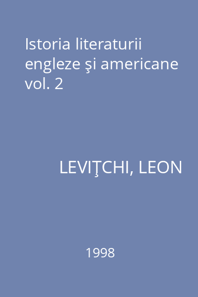 | Titlu | Istoria literaturii engleze şi americane vol. 2 |