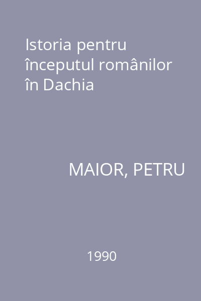 | Titlu | Istoria pentru începutul românilor în Dachia |