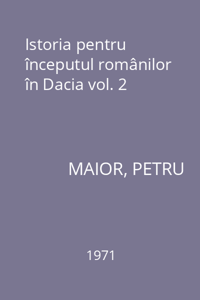 | Titlu | Istoria pentru începutul românilor în Dacia vol. 2 |
