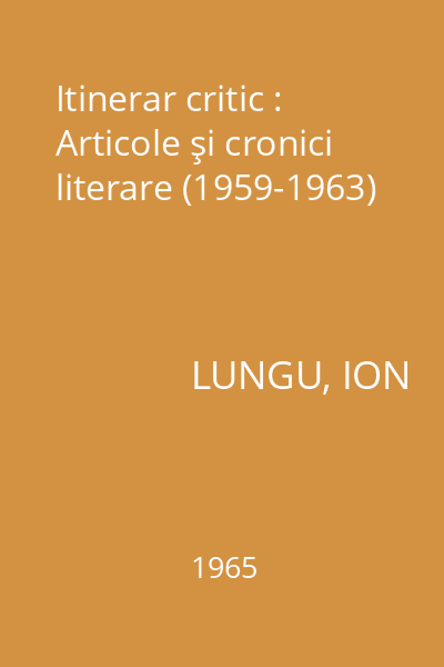 | Titlu | Itinerar critic : Articole şi cronici literare (1959-1963) |