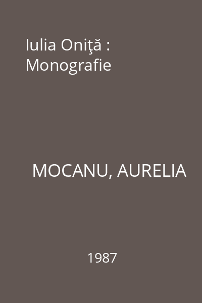| Titlu | Iulia Oniţă : Monografie |