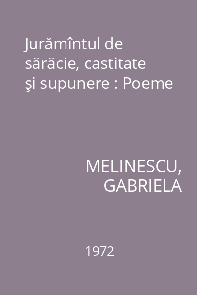 | Titlu | Jurămîntul de sărăcie, castitate şi supunere : Poeme |