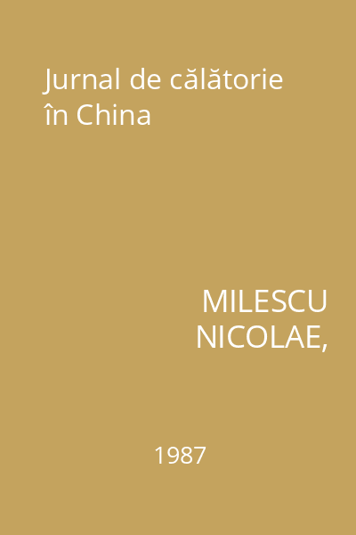 | Titlu | Jurnal de călătorie în China |