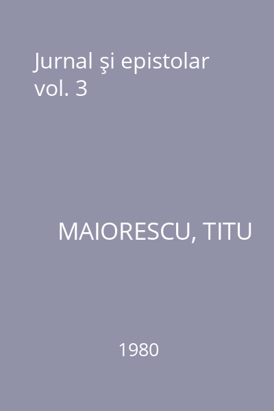 | Titlu | Jurnal şi epistolar vol. 3 |