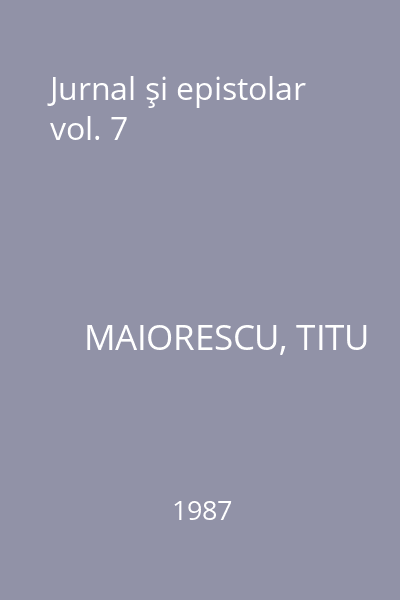 | Titlu | Jurnal şi epistolar vol. 7 |