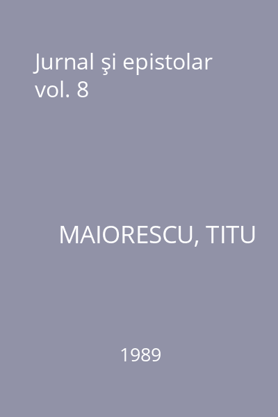 | Titlu | Jurnal şi epistolar vol. 8 |
