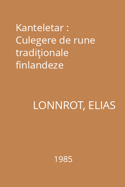 | Alte informaţii la titlu | Culegere de rune tradiţionale finlandeze |