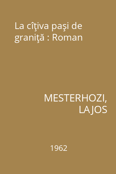 | Titlu | La cîţiva paşi de graniţă : Roman |