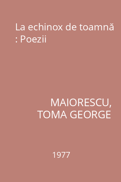 | Titlu | La echinox de toamnă : Poezii |