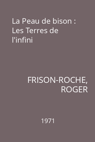| Titlu | La Peau de bison : Les Terres de l'infini |