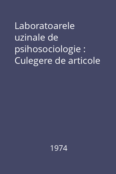 | Titlu | Laboratoarele uzinale de psihosociologie : Culegere de articole |