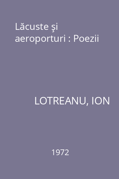 | Titlu | Lăcuste şi aeroporturi : Poezii |