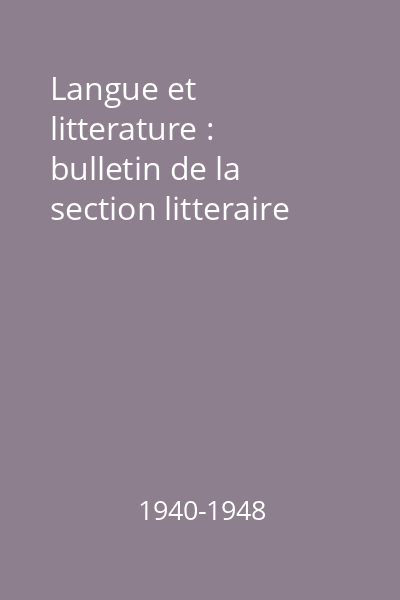| Titlu | Langue et litterature : bulletin de la section litteraire |