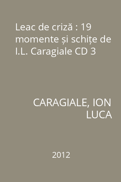 | Titlu | Leac de criză : 19 momente și schițe de I.L. Caragiale CD 3 |