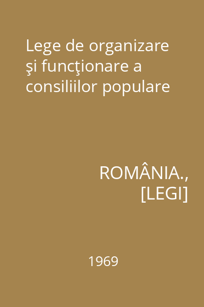 | Titlu | Lege de organizare şi funcţionare a consiliilor populare |