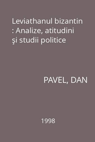 | Titlu | Leviathanul bizantin : Analize, atitudini şi studii politice |
