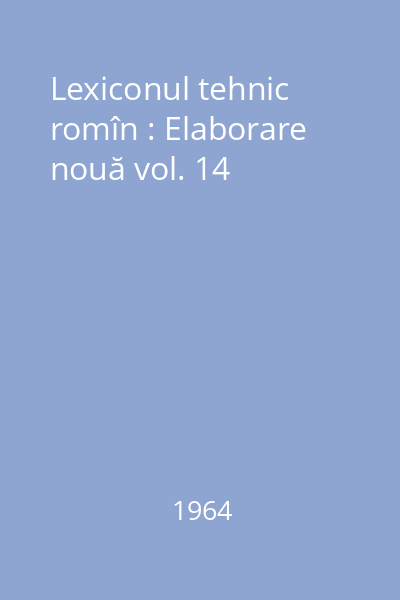 | Titlu | Lexiconul tehnic romîn : Elaborare nouă vol. 14 |