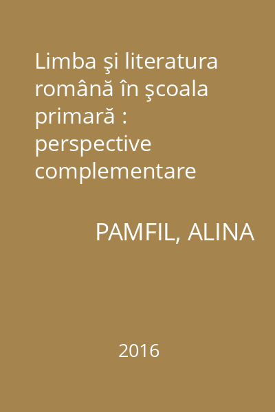 | Titlu | Limba şi literatura română în şcoala primară : perspective complementare |