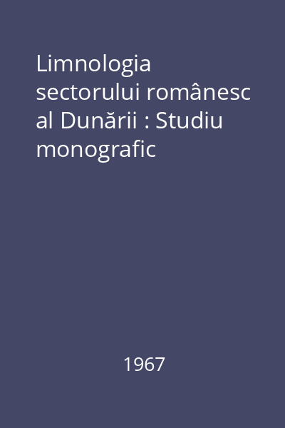 | Titlu | Limnologia sectorului românesc al Dunării : Studiu monografic |