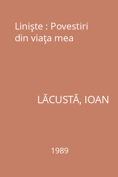 | Titlu | Linişte : Povestiri din viaţa mea |