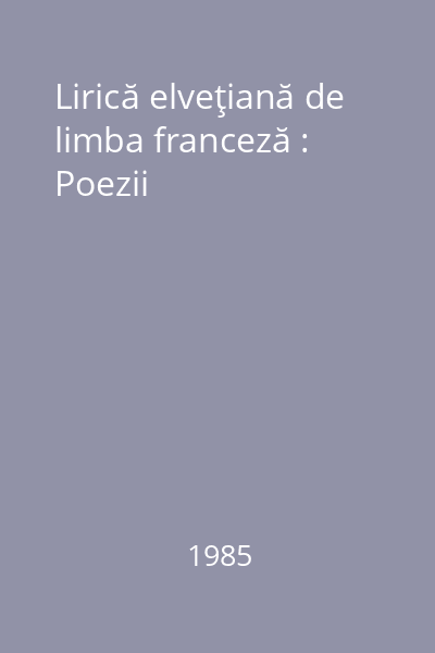 | Titlu | Lirică elveţiană de limba franceză : Poezii |