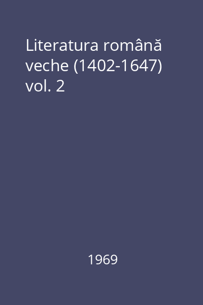 | Titlu | Literatura română veche (1402-1647) vol. 2 |