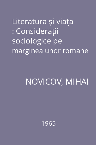 | Titlu | Literatura şi viaţa : Consideraţii sociologice pe marginea unor romane |