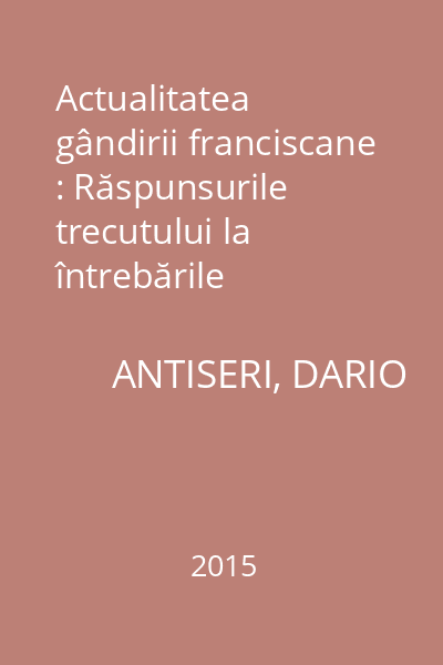 | Alte informaţii la titlu | ritualul Sfintei Liturghii, Lecționar și rugăciuni pentru sărbătorile franciscane |