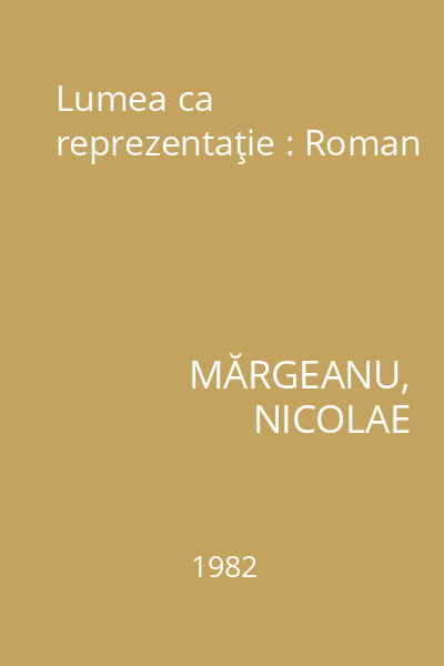 | Titlu | Lumea ca reprezentaţie : Roman |