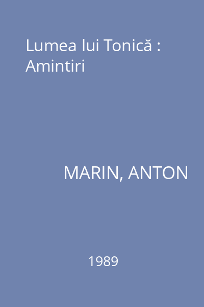 | Titlu | Lumea lui Tonică : Amintiri |