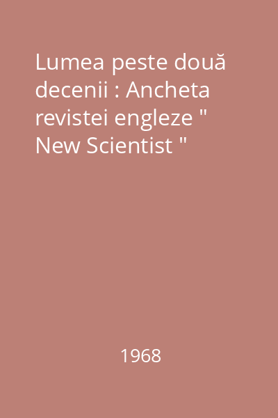| Titlu | Lumea peste două decenii : Ancheta revistei engleze " New Scientist " |