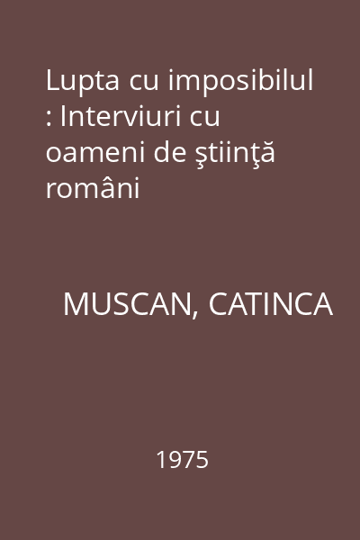 | Titlu | Lupta cu imposibilul : Interviuri cu oameni de ştiinţă români |