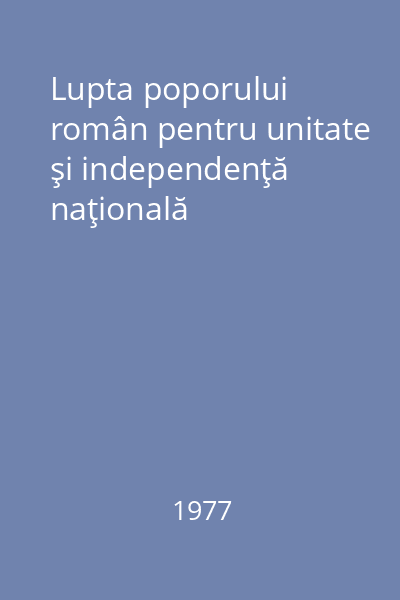 | Titlu | Lupta poporului român pentru unitate şi independenţă naţională |
