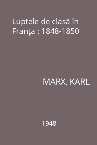 | Titlu | Luptele de clasă în Franţa : 1848-1850 |