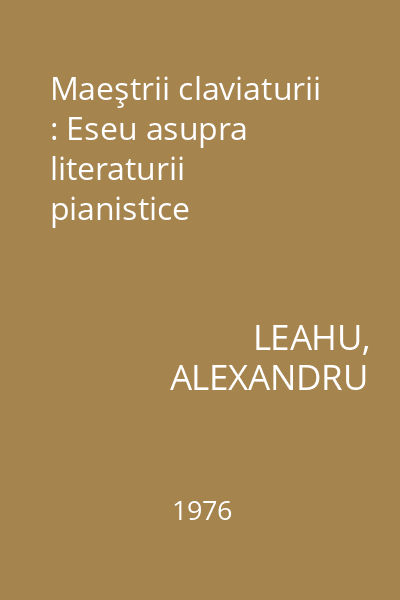 | Titlu | Maeştrii claviaturii : Eseu asupra literaturii pianistice |