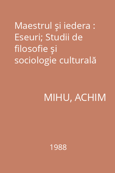 | Titlu | Maestrul şi iedera : Eseuri; Studii de filosofie şi sociologie culturală |